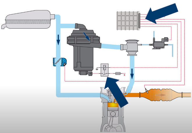 En un motor la mayoría de las sustancias nocivas se producen durante el proceso de arranque en frío. La insuflación de aire secundario es un método acreditado para la reducción de estas emisiones de arranque en frío.